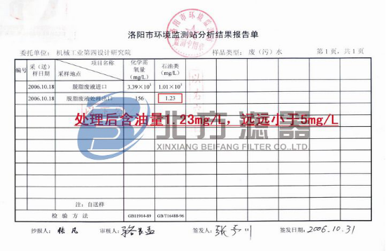 PS:本公司保證設備處理效果的真實,熱忱歡迎新老客戶攜帶含油廢水樣液前來我司進行油水分離機的現場試驗。嚴禁同行不經允許盜用本公司圖片,否則后果自負。